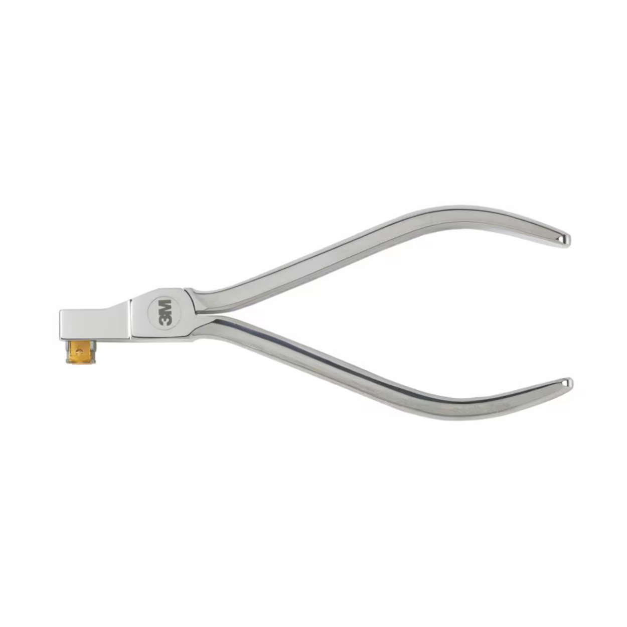 Archwires are removed from 3M™ Clarity SL Brackets or 3M™ SmartClip™ Brackets by sliding the instrument’s hooks beneath the archwire and lifting it away from the bracket with a squeeze.