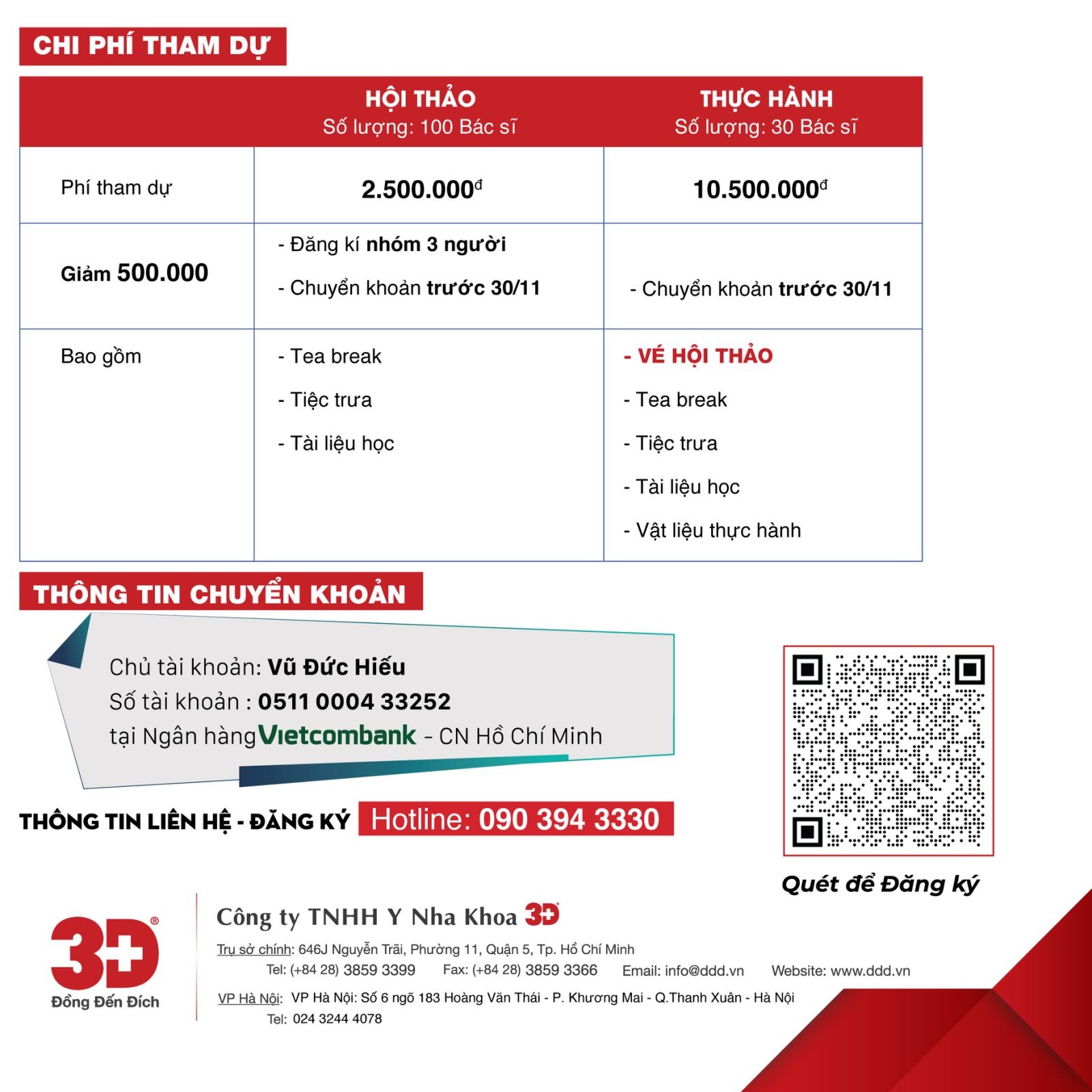 ♦️ Hoặc liên hệ Hotline 090.394.3330 để đăng ký