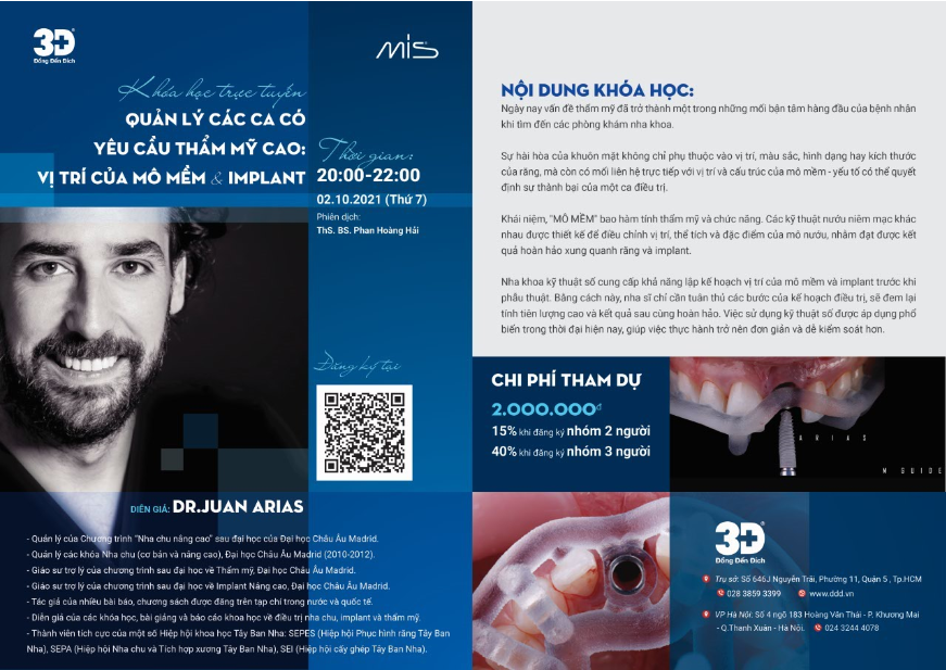 Trang chủ / Sự kiện / [MIS WEBINAR] – Quản lý các ca có yêu cầu thẩm mỹ cao: Vị trí của mô mềm & Implant